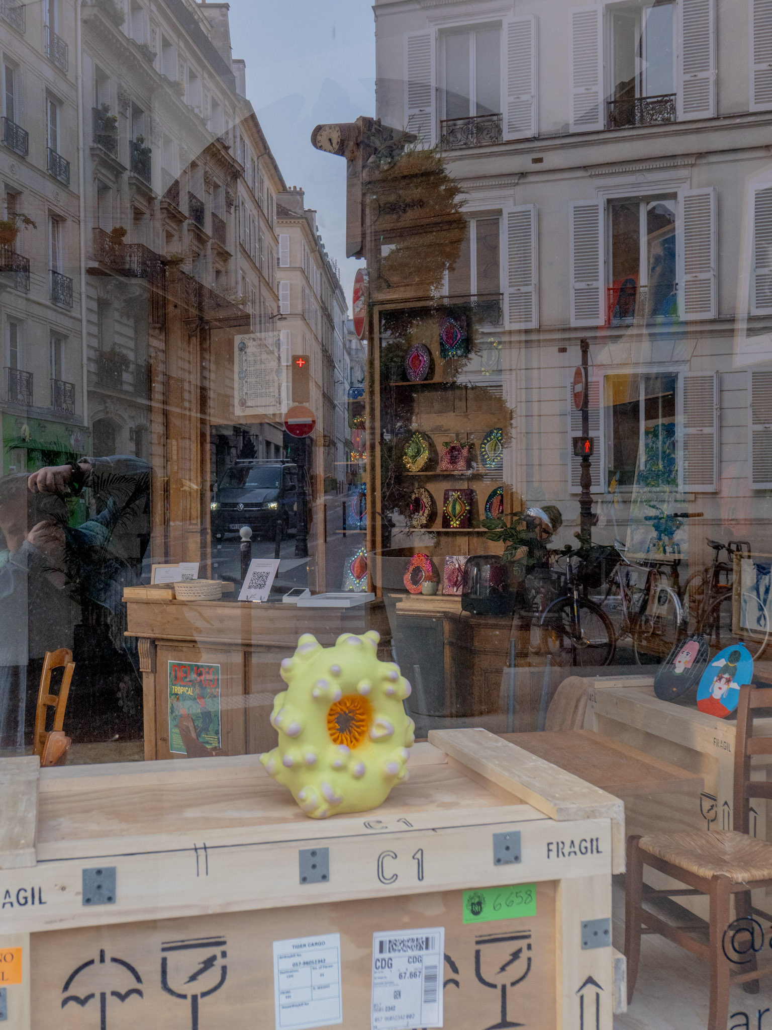 Je lui racontai ma découverte du matin, on a rigolé en imaginant les bourgeois du 9e passer devant sans rien voir, ou s'indigner vivement, il s'est demandé si ça irait dans son salon, j'ai fait remarquer qu'il y avait quand même un cap psychologique à franchir pour s'assoir sur un coussin vulve, il a acquiescé, et puis on a été interrompus par son téléphone et on est partis chacun vers nos emplois respectifs. (Enfin, en ce qui me concerne, je suis allée boire son café sur le toit, mais c'est un détail d'organisation.